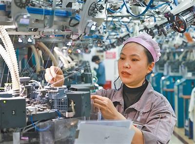 12月10日,贵州省黔东南苗族侗族自治州三穗县贵州鼎盛服饰有限公司生产车间,工人在赶制服装订单产品。 杨 剑摄(影像中国)
