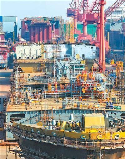 12月11日,江苏省太仓港经济技术开发区一家造船企业厂区内,多艘船舶同时开工建造。 计海新摄(影像中国)