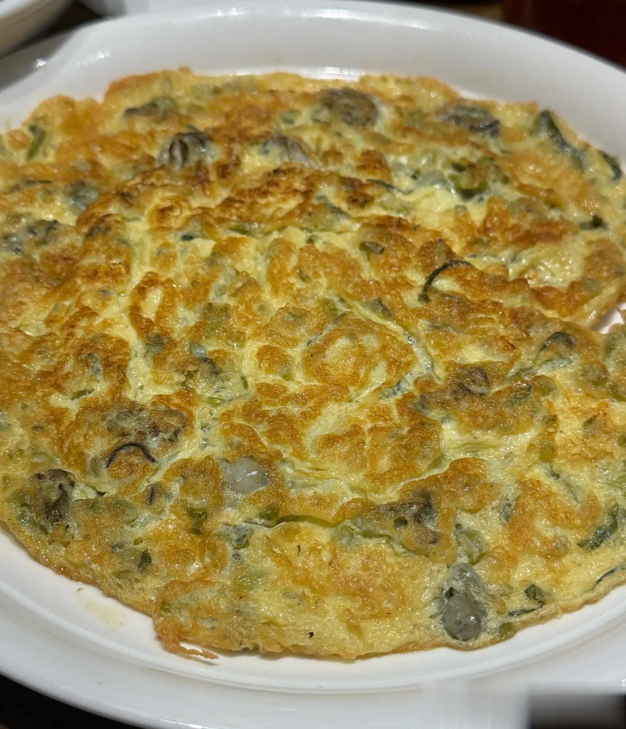3. 锅中倒油,油热后倒入鸡蛋牡蛎液,小火煎至两面金黄。