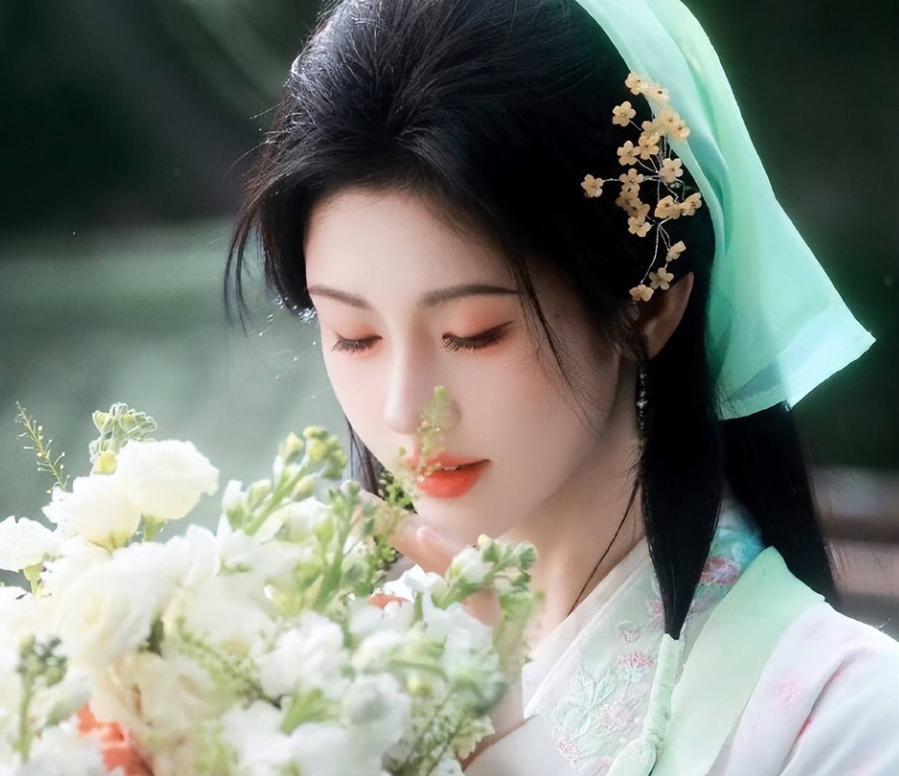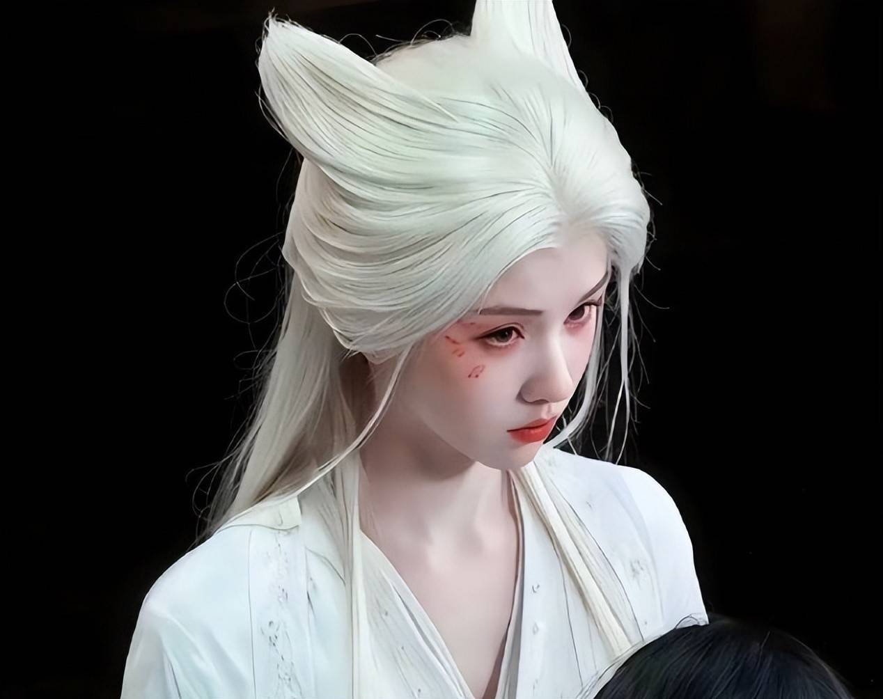 除了身穿绿衣的造型外,鞠婧祎的白发狐耳造型也获得不小的关注,蓬松的银白色假发搭配淡红色眼妆,真的是破碎感十足,除了妖族造型外,鞠婧祎的田园造型也美出新高度,她将刘海梳起,佩戴戴珠花流苏头巾,如同画中走出来的美人。